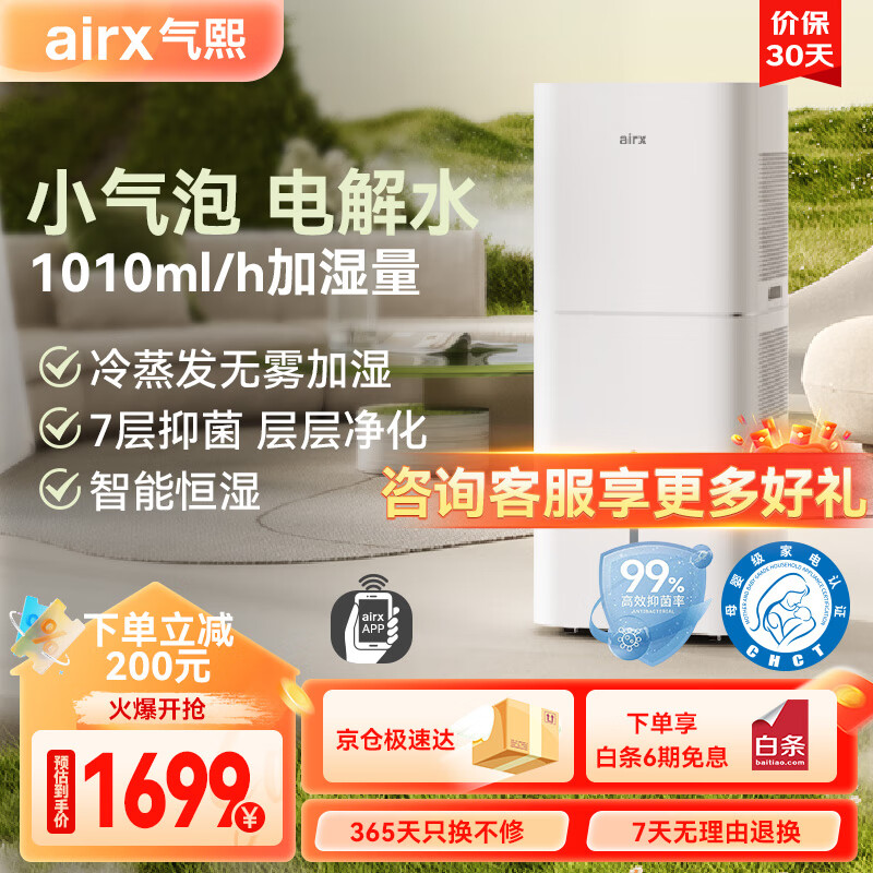 airx气熙 无雾加湿器 高端智能恒湿母婴健康卧室家用办公室空气加湿净化器H8Pro 高端无雾加湿1010ml价格:1899.00元!
