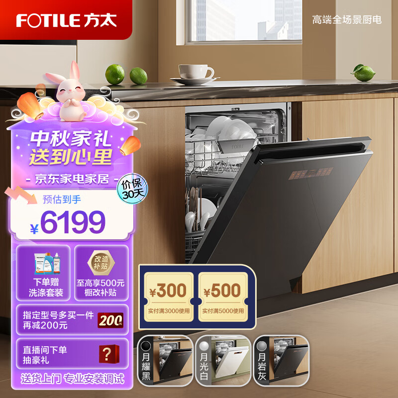 方太新月洗碗机嵌入式家用 高能气泡洗 升级16套大容量 VF1升级 烟洗联动 三色可选02-G-VF1价格:6199.00元!