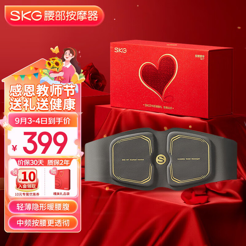 skg腰部按摩器 无线热敷智能护腰按摩仪 揉捏暖腰神器 教师节送男女友老师生日礼物 W7尊贵海岩灰礼盒价格:449.00元!