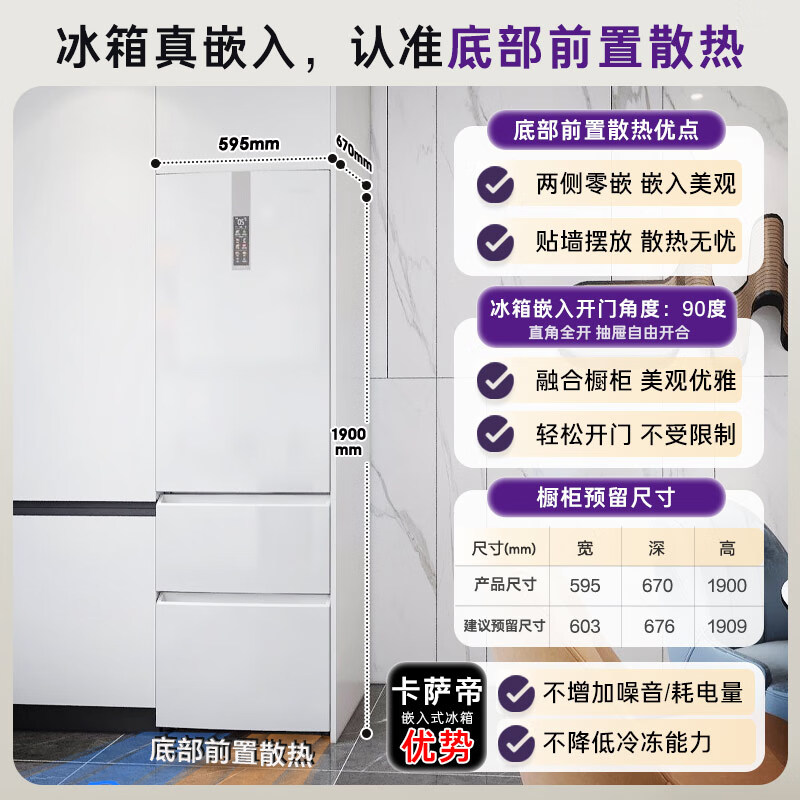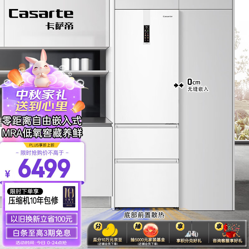 卡萨帝(Casarte)380升原石超薄零嵌入式多门三开门租房用小型3-4人白色一级能效家用无霜电冰箱BCD-380WLCI374WKU1价格:6499.00元!
