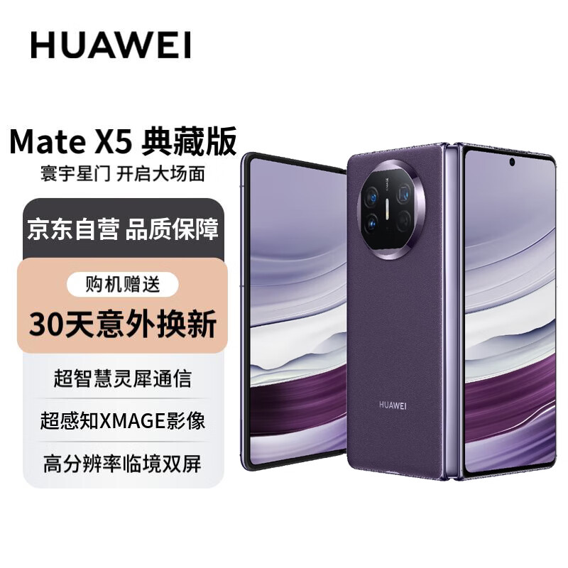 华为 Mate X5 典藏版 折叠屏手机 16GB 512GB 幻影紫【赠服务】价格:14399.00元!