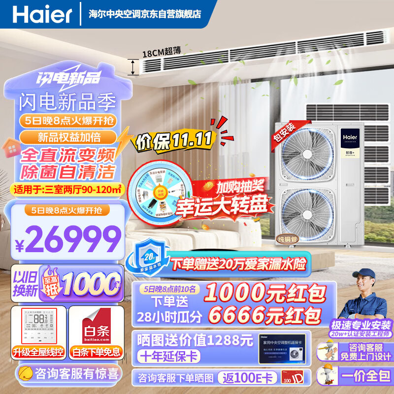 海尔(Haier)中央空调一拖五风管机6匹小多联一级能效全直流变频嵌入式智尊+旗舰版RFC140MXSA2VA(G)价格:26999.00元!