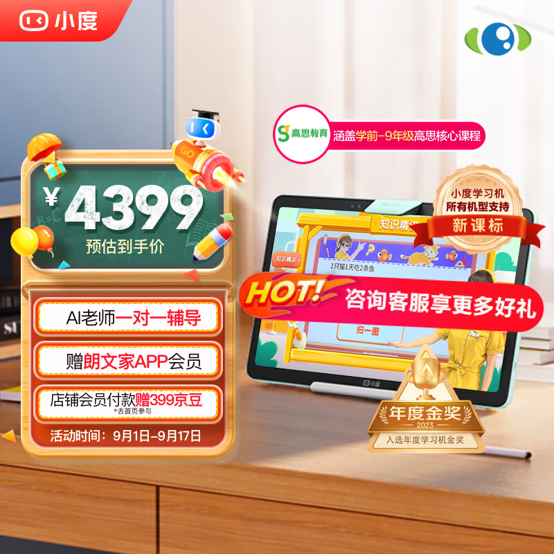 小度学习机Z20Plus高思2024升级版(6+256G)小学到高中学生平板电脑 文心大模型 AI精准学 郎文家 护眼价格:2499.00元!