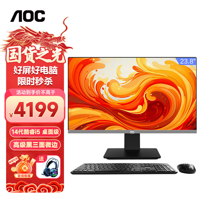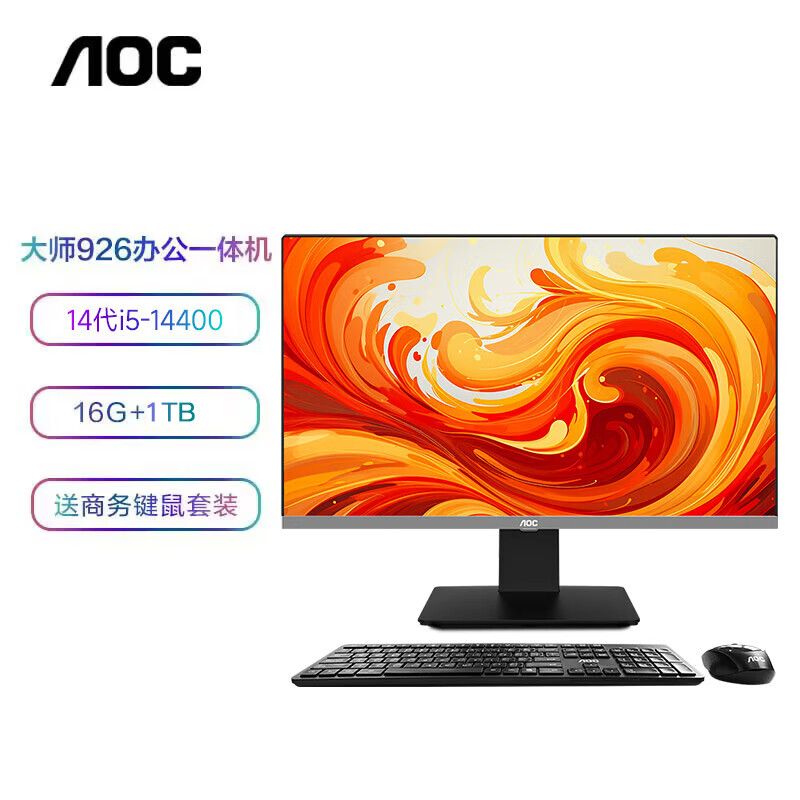 AOC 大师926 23.8英寸高清办公一体机电脑台式主机(14代i5-14400 16G 1T SSD 双频WiFi ) 黑价格:4199.00元!