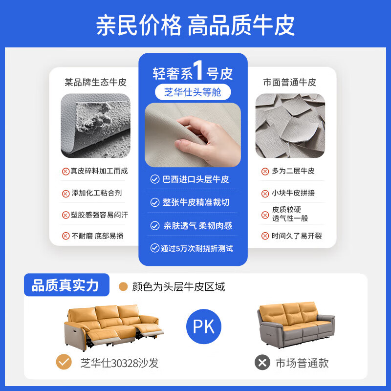 2、沙发很漂亮,3.4双电动位放客厅很大气,芝华仕品牌还是很不错的,