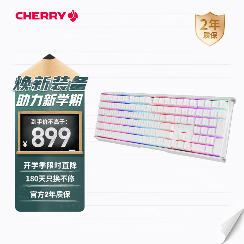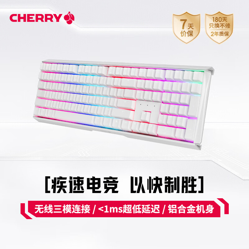 CHERRY樱桃 MX3.0S无线键盘 机械键盘 游戏键盘 电脑键盘 蓝牙有线三模 RGB灯效 铝合金外壳 白色黑轴价格:899.00元!