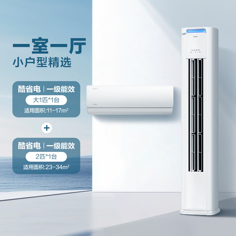 美的(Midea)空调 新一级能效 酷省电 空调套装 一室一厅 小户型精选(大1匹酷省电+2匹酷省电)价格:7598.00元!