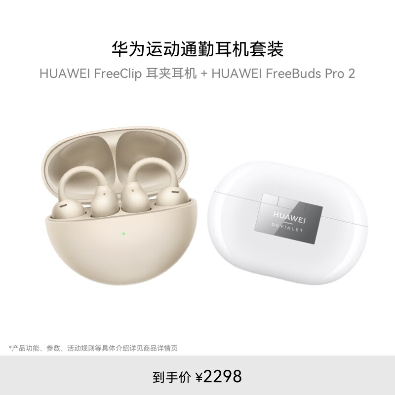 华为 耳机运动办公通勤套装 HUAWEI FreeClip 耳夹耳机 暖星云 + FreeBuds Pro 2 陶瓷白 两件套装价格:2598.00元!
